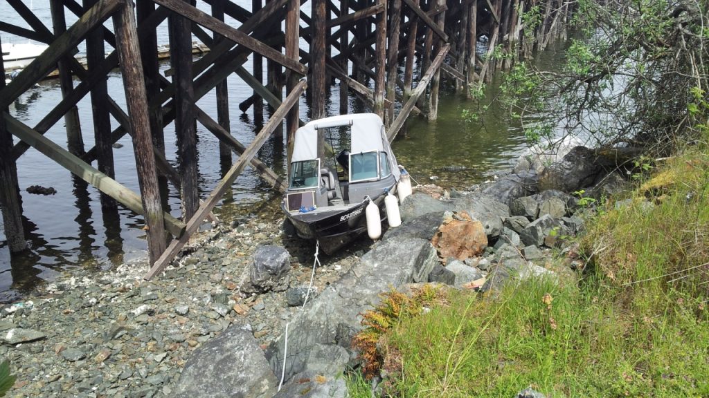 This theft was obviously abandoned “Mid-Stroke” so to speak. Boat was left to drift, ended up on the rocks nearby and had to be rescued later in the day. Check out the pics.