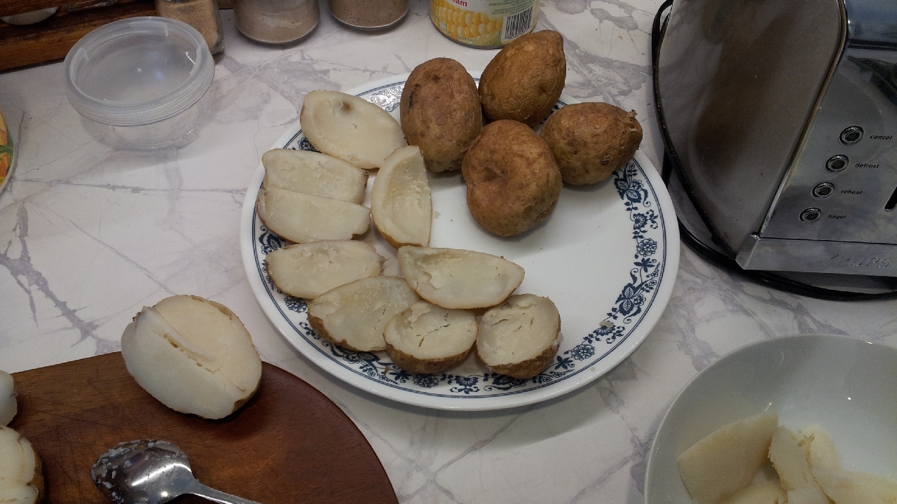 Bake the potatoes, cover with cheese and toppings you like and “Abracadabra”!