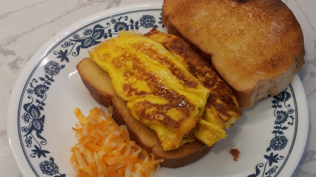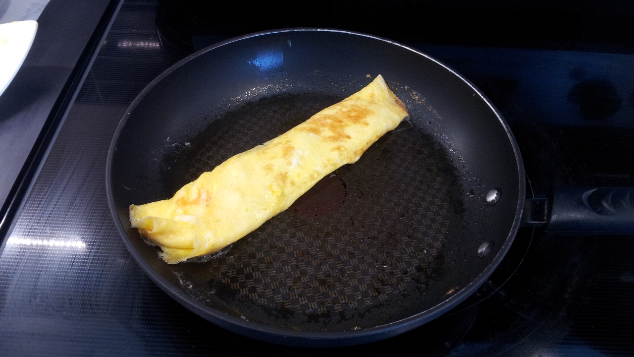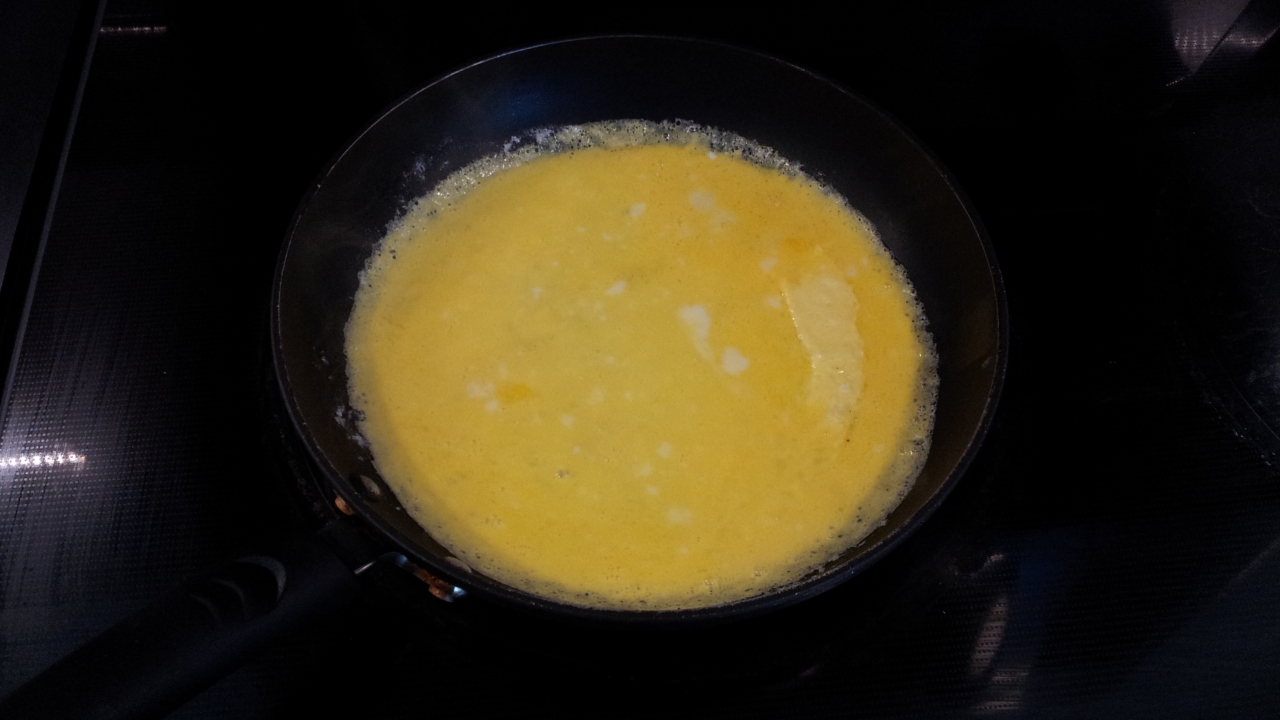 1 egg scrambled and cooked thin on a skillet.