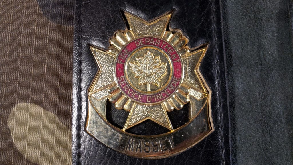 My old “Masset Volunteer Fire Department” Badge! Like we needed badges, haha, we had fire trucks and uniforms, haha.