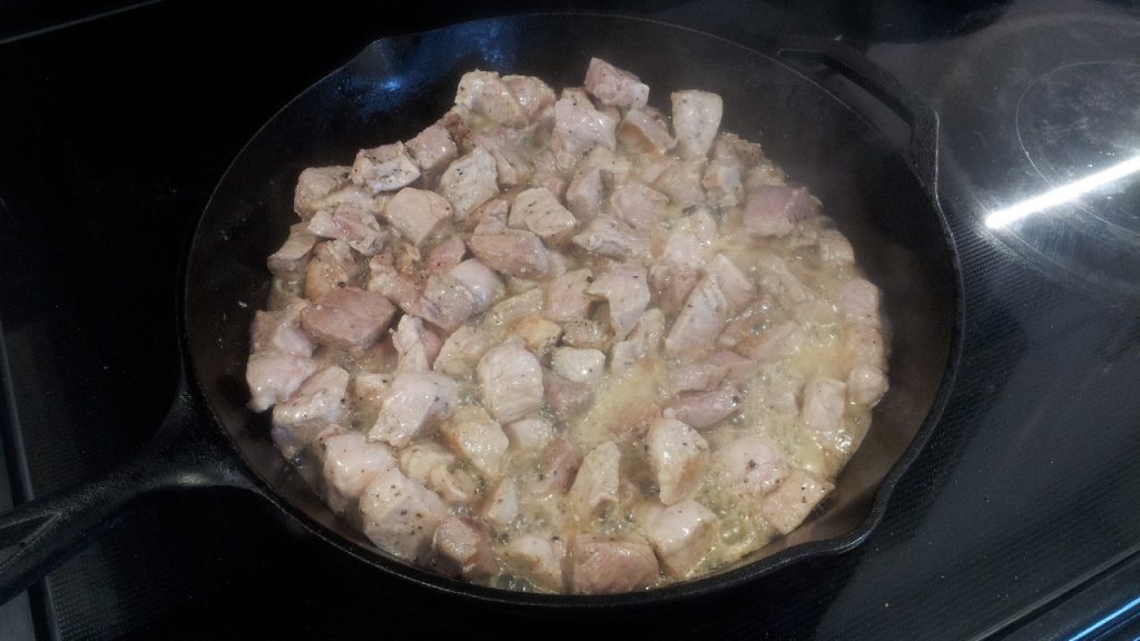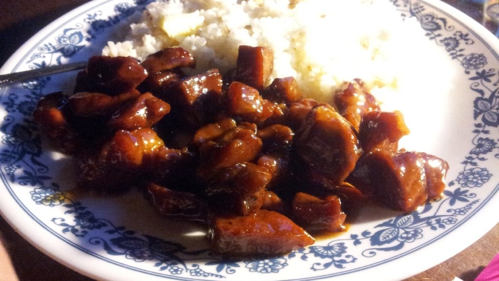 Cook the pork, throw in with sauce, simmer for an hour or two. Eat when rice is ready. haha