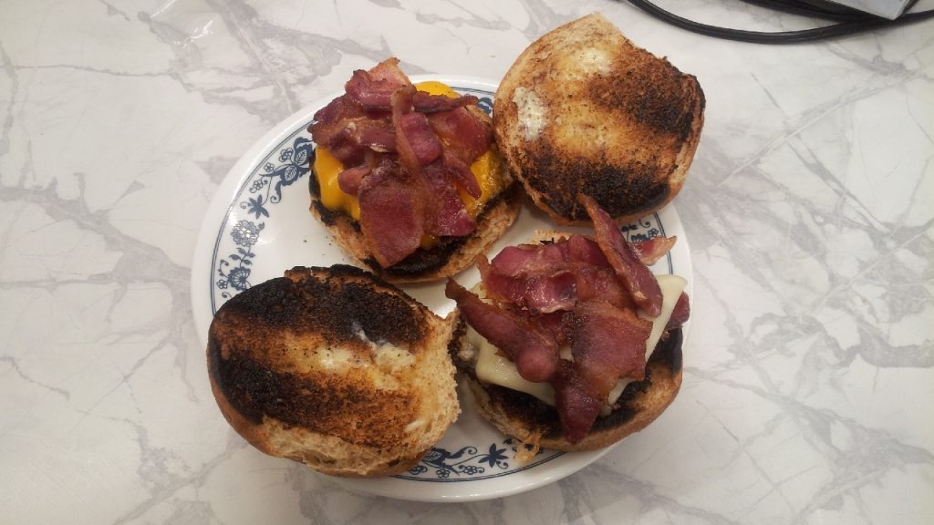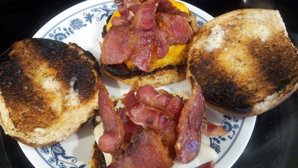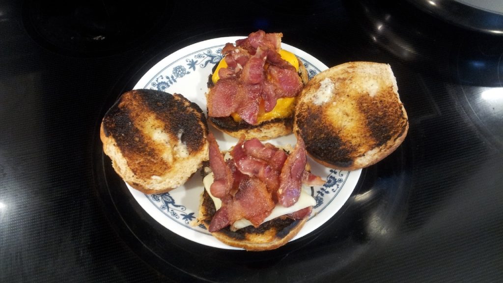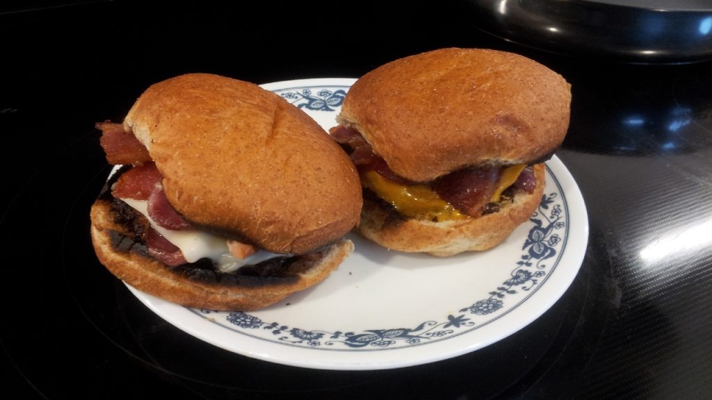 Cook the burgers, drop some cooked bacon on top, add your choice of cheese.