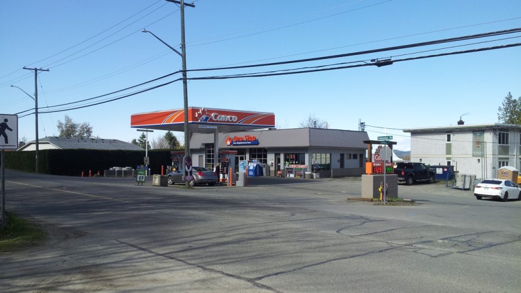 Right across the street from the local gas station.