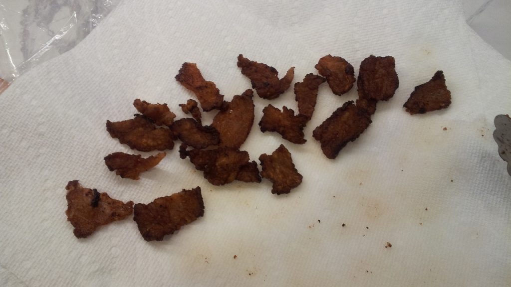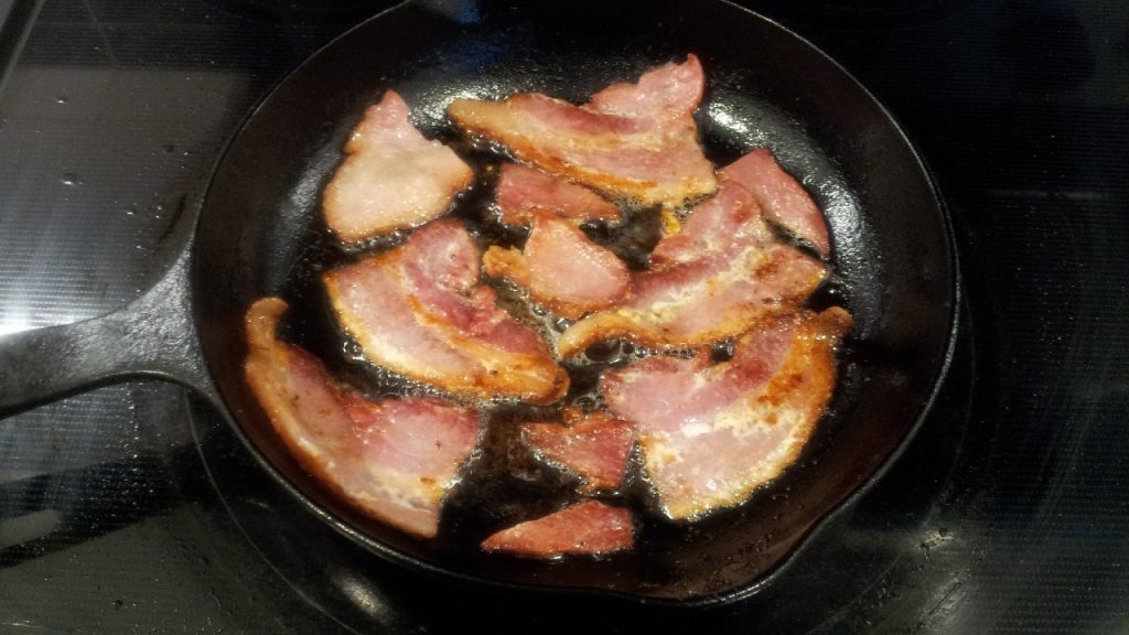 Precook left over bits of bacon fat, and a big batch of bacon, finally, if you don’t collect and save the bacon grease for other cooking uses then please just leave this site now.