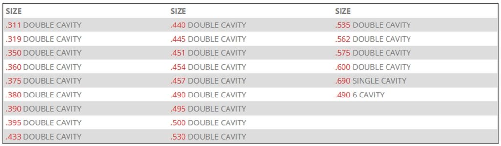 | .454 Caliber | 6 Cavity | For use in some .45 Caliber Pistols |