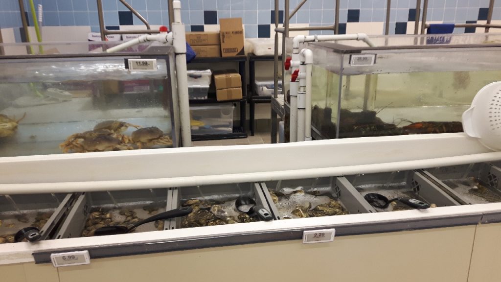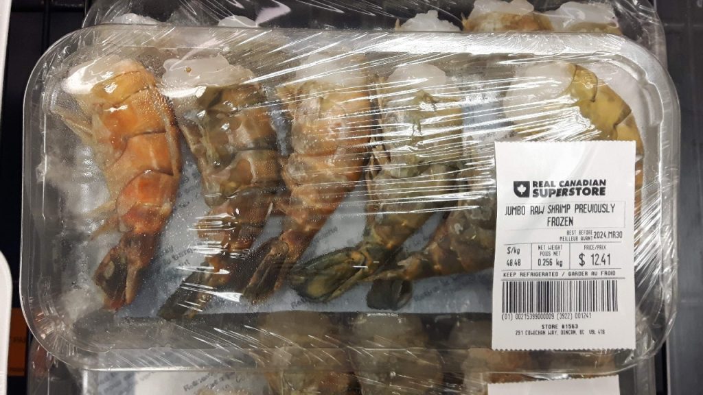 Large Raw Shrimp were pricey at almost $49.00 / kg. Bread was holding at $1.25 / loaf. Crabs were cheap and lobster was expensive!