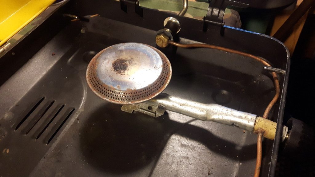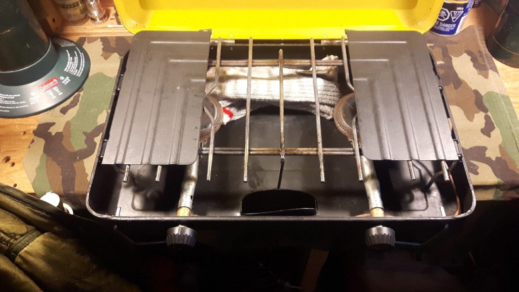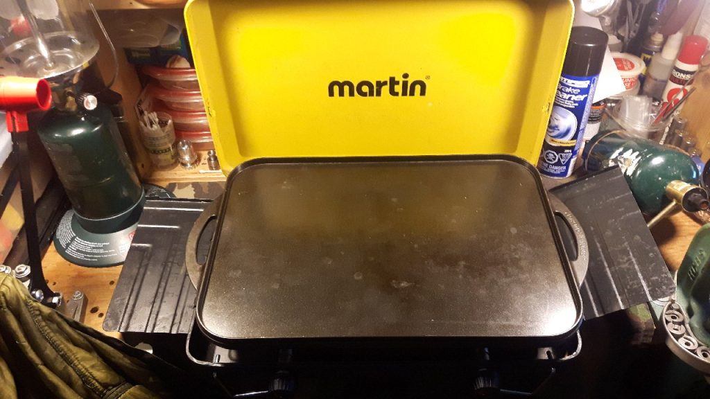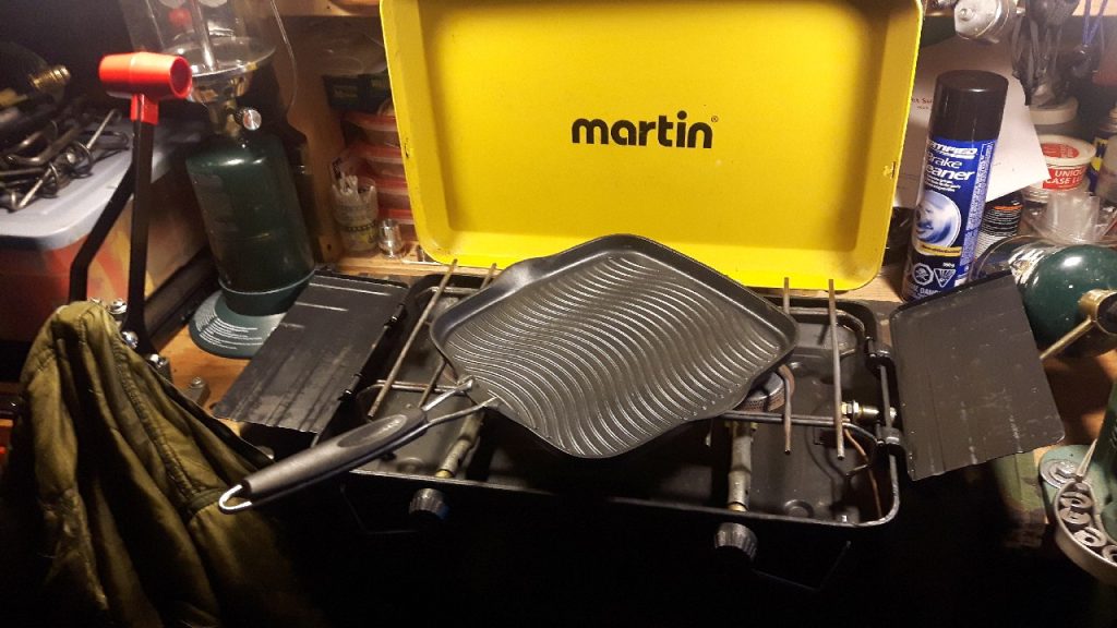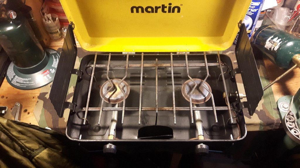 It folds up, it’s light, it will run on small 1 pound bottles of propane made for camping and they’re bomb proof most of the time!