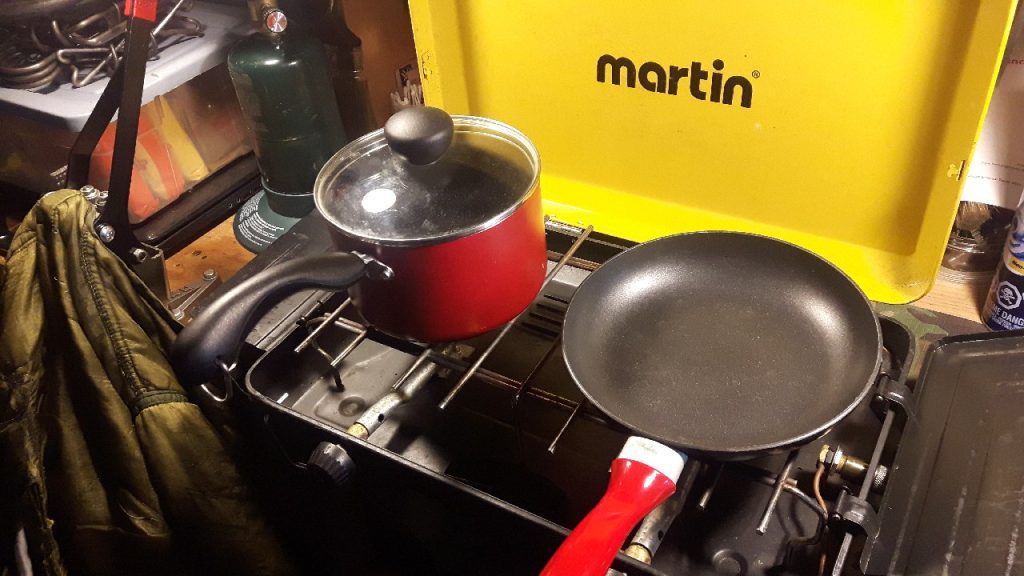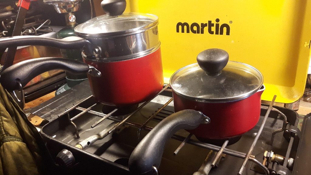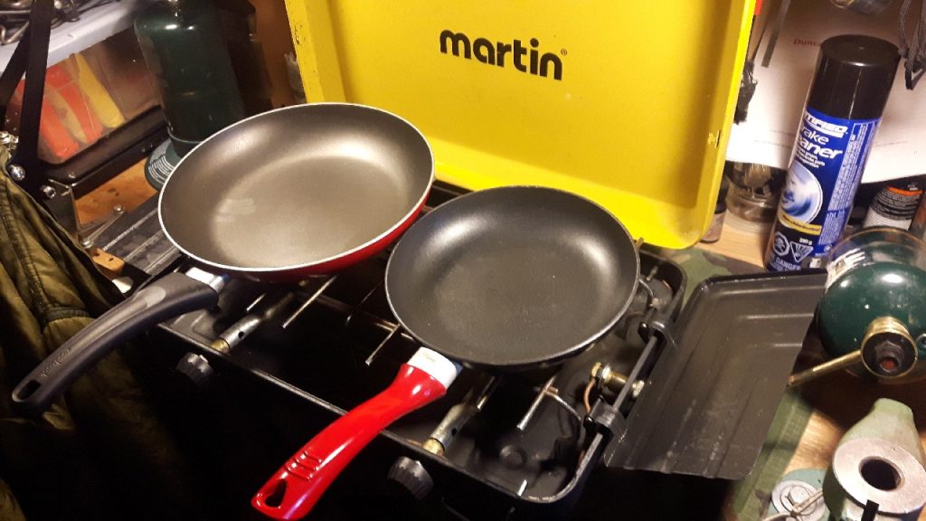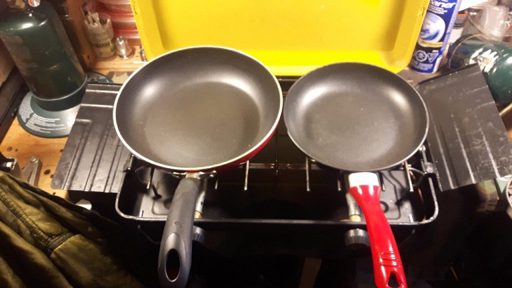 Test all your cookware for size and fit on the stove before you go. Not all regular cookware used at home will fit easily. 8 inch diameter is my preferred size. I also like square when it’s possible due to the extra cooking surface available.