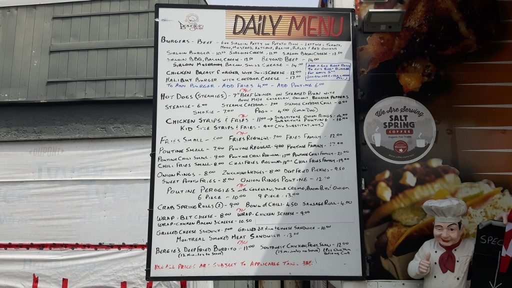 If you’re looking for Bergie’s Food Truck, it’s now on the Northeast Corner of Henry Road & Trans Canada Highway, kitty corner from where it used to be. Just shy of halfway between Victoria & Nanaimo in Chemainus on Vancouver Island, BC, Canada.