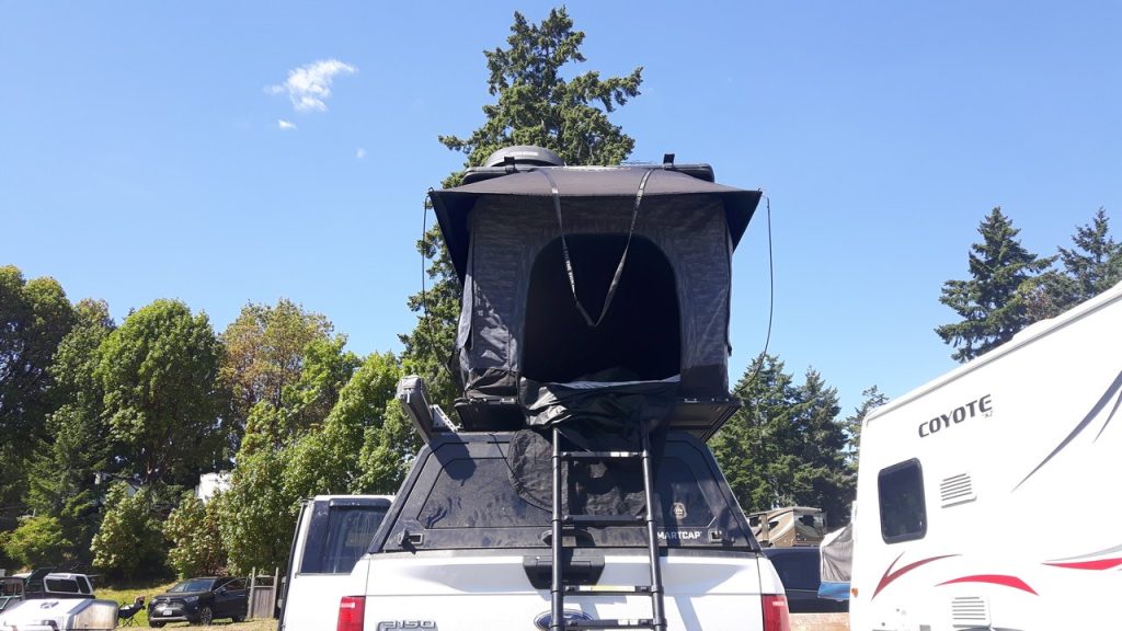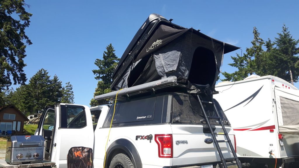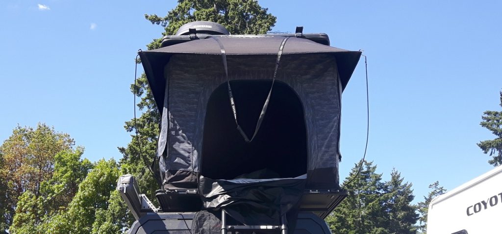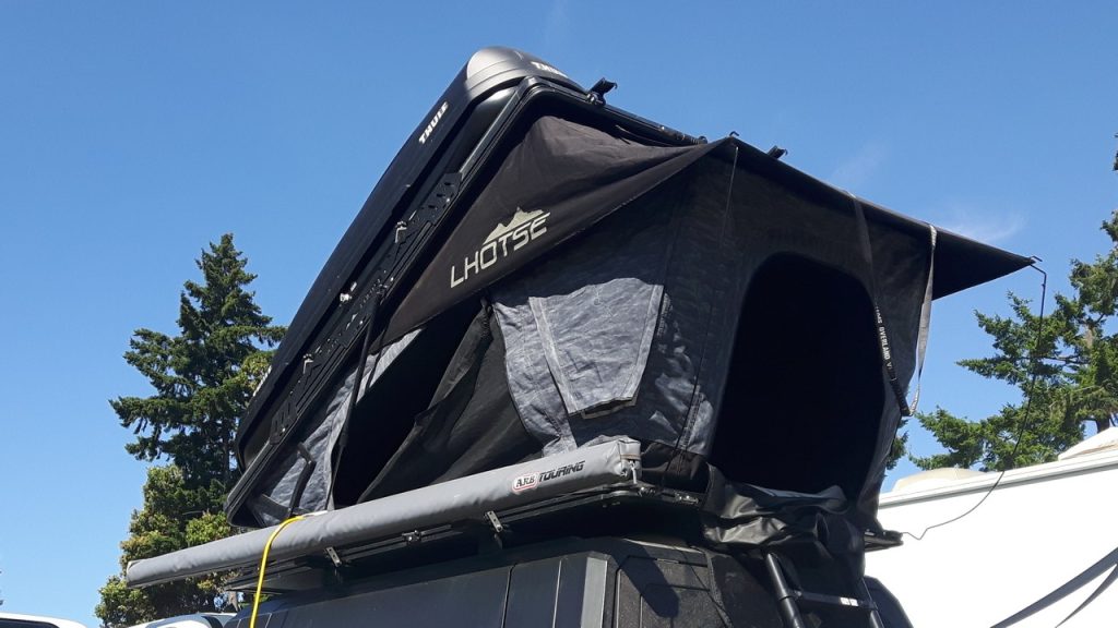 There’s a Thule brand cargo carrier currently mounted on top of the pop up tent and when it’s closed a small kayak can be mounted beside that! Nice setup!