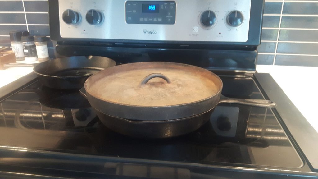 I just tried my old “Camp Dutch Oven” lid on my Lodge 12″ skillet. It fits!