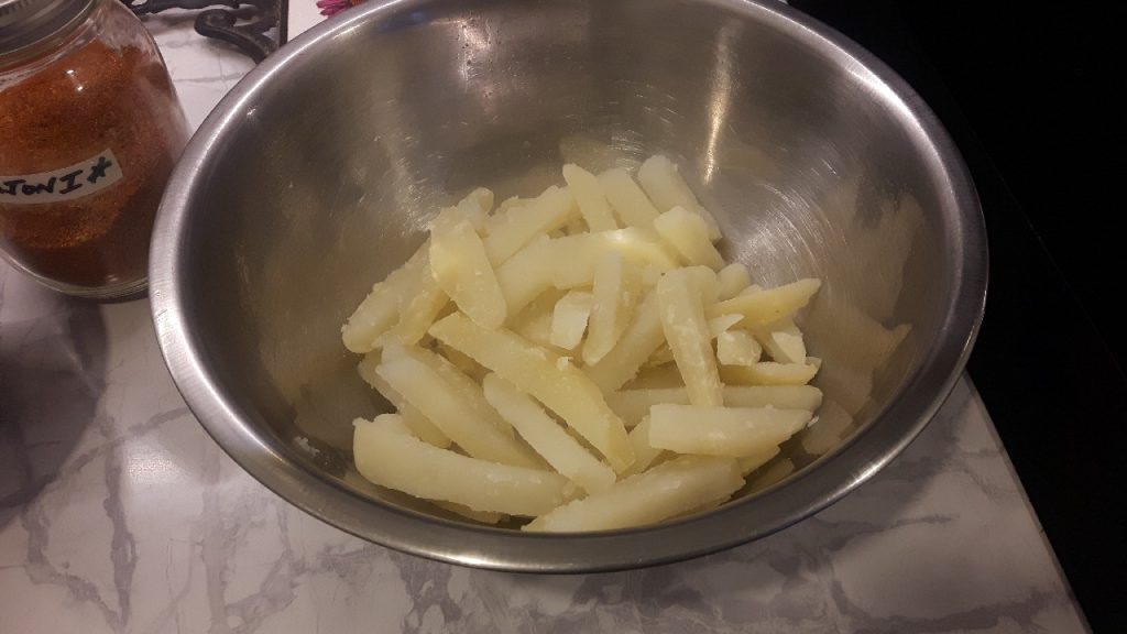 - Parboil the fresh cut potatoes