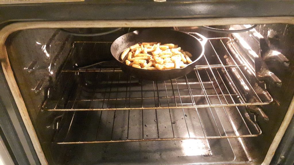 - Slide your cast iron skillet into a convection oven preheated to 450 degrees