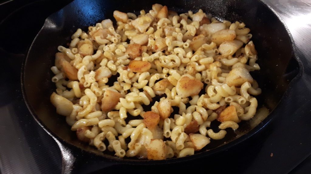 Leftovers, no matter how simple are always good. Fried potatoes with macaroni. Comfort food.